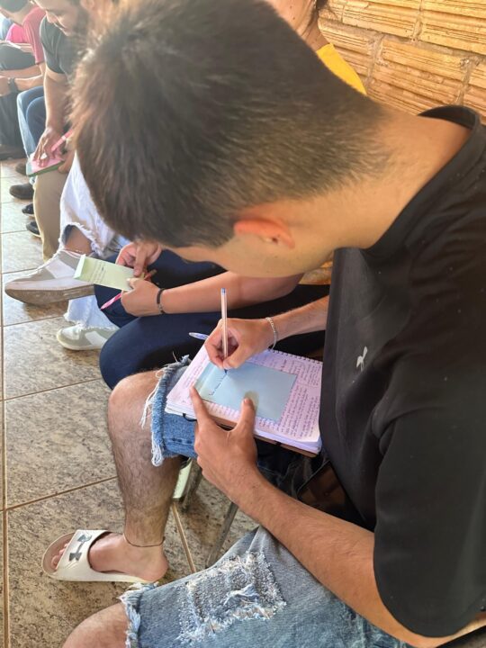 Inspirado pelo tema do fim de semana, o colaborador de pastoral do MAGIS Burnier, Daniel Romano, conduziu um momento orante a partir da Via Lucis, ajudando os jovens a “rezar a esperança”. Durante a oração, eles percorreram alguns espaços da chácara, passando por estações que apresentavam contemplações dos episódios a partir da Ressurreição de Jesus.